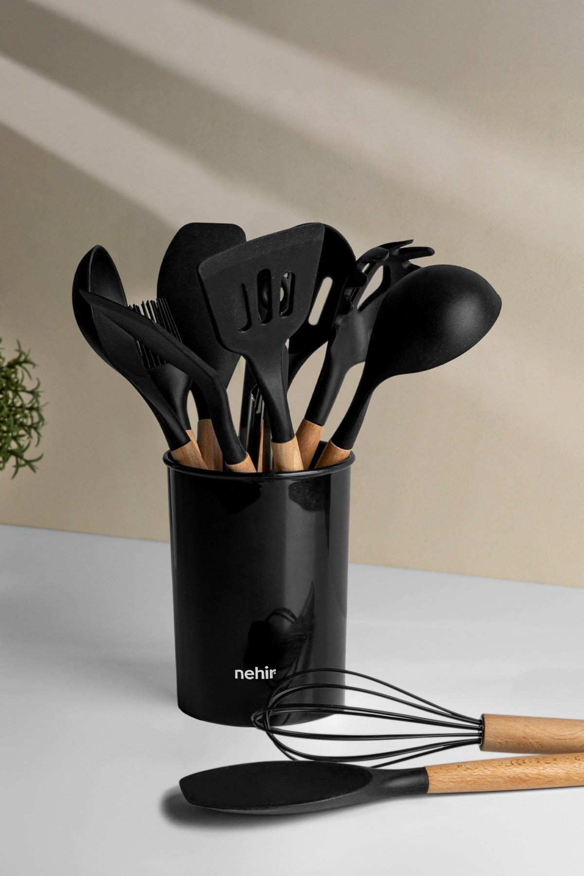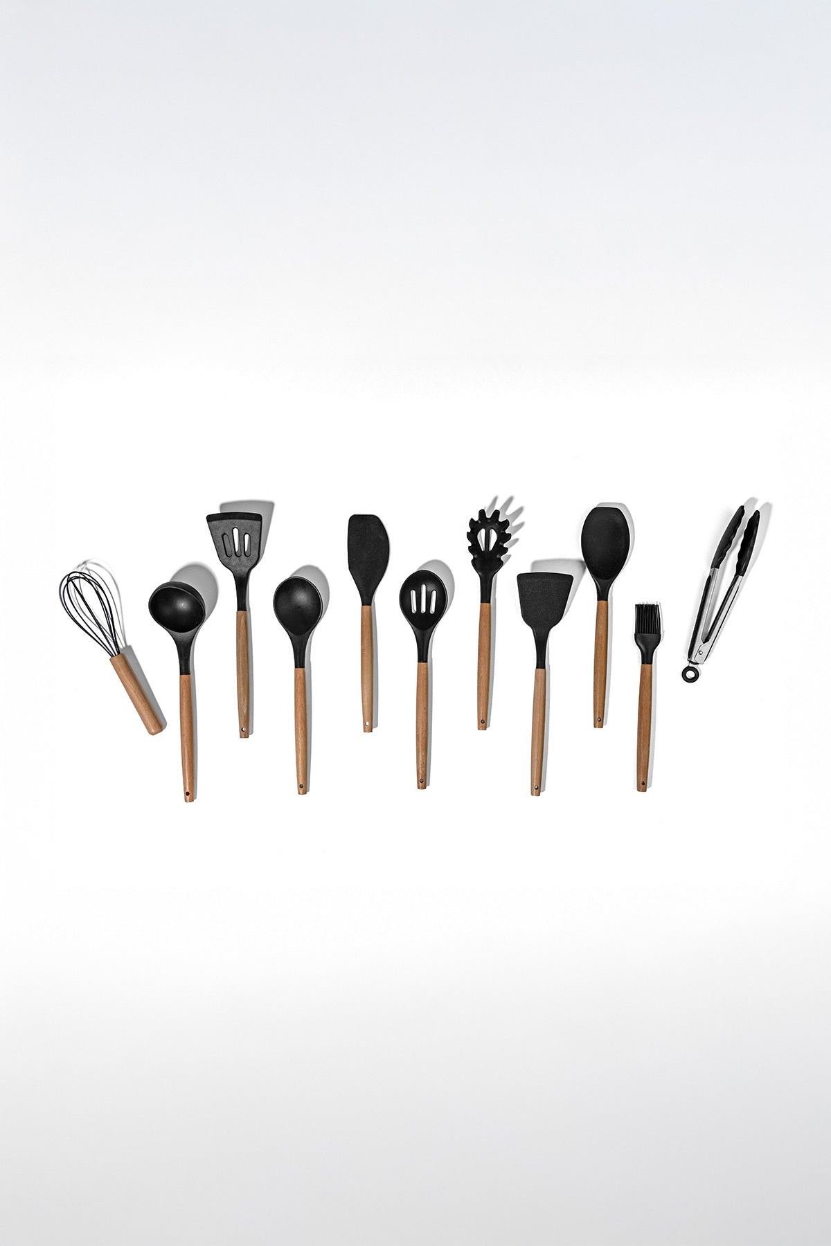 Angela Black Wooden Silicone 12 Piece Serving Set