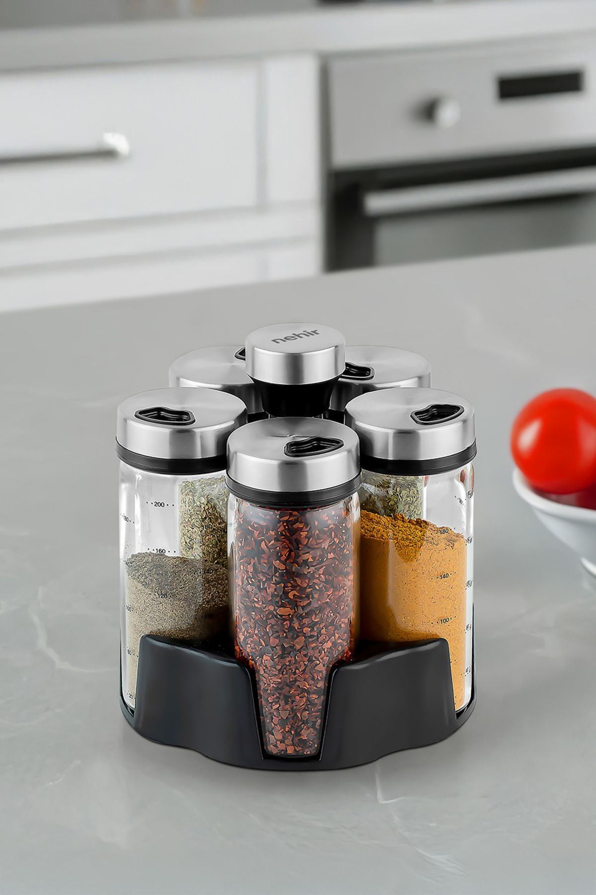6 Parça Borosilikat Döner Standlı Baharatlık Seti