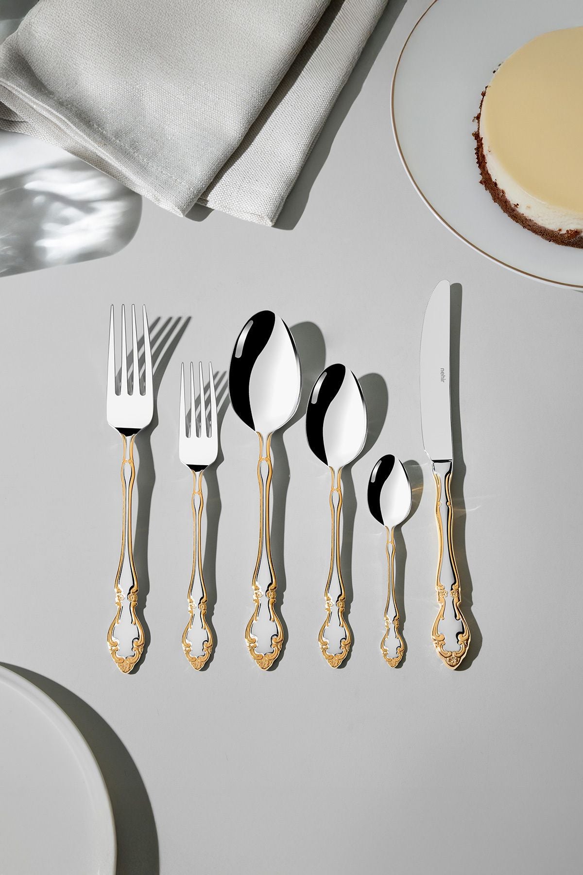 Adriana Altın Sade 12 Kişilik 72 Parça Kutulu Çatal Kaşık Bıçak Takımı