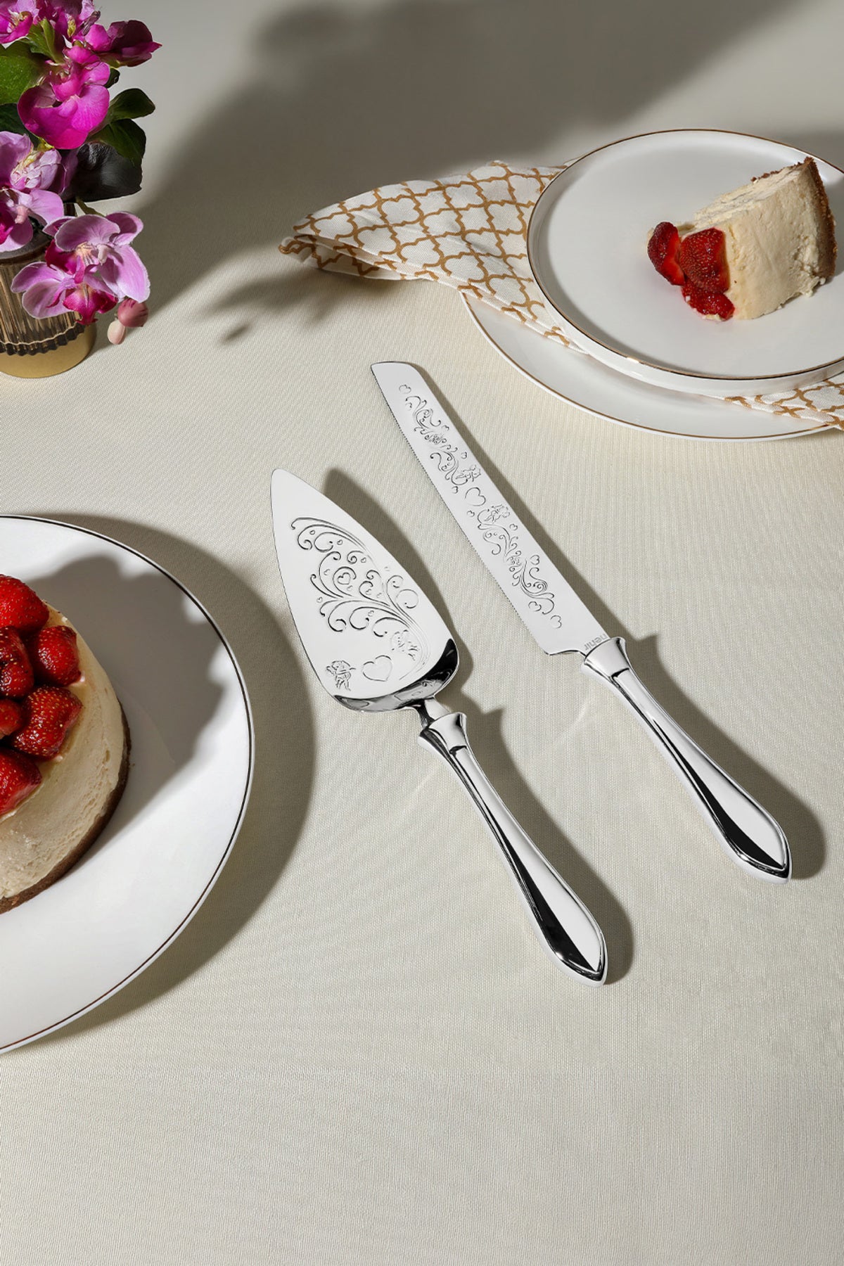 Defne Sade 2 Parça Paslanmaz Çelik Kek Servis Seti
