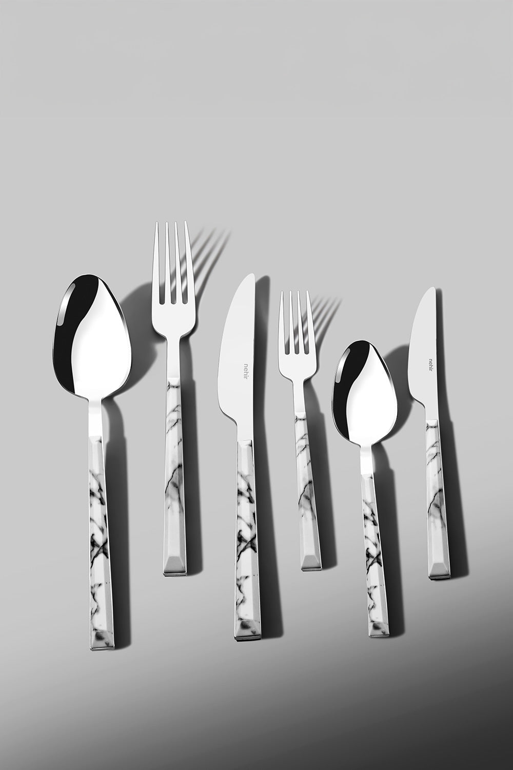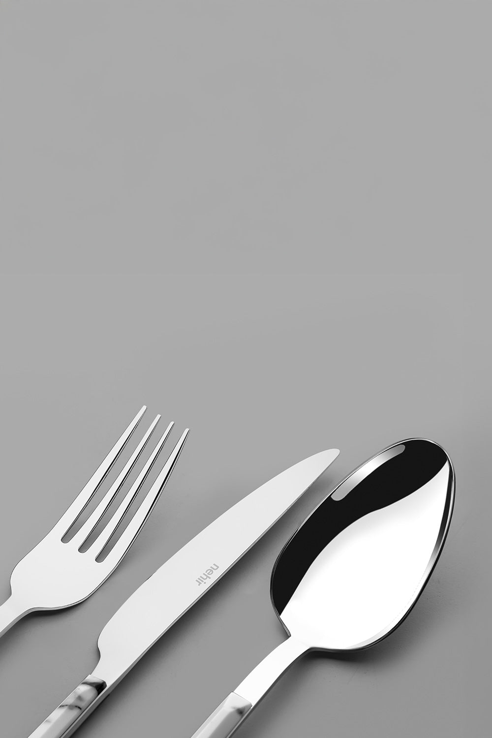 Flora Beyaz 6 Kişilik Desenli 36 Parça Kutulu Çatal Kaşık Bıçak Takımı