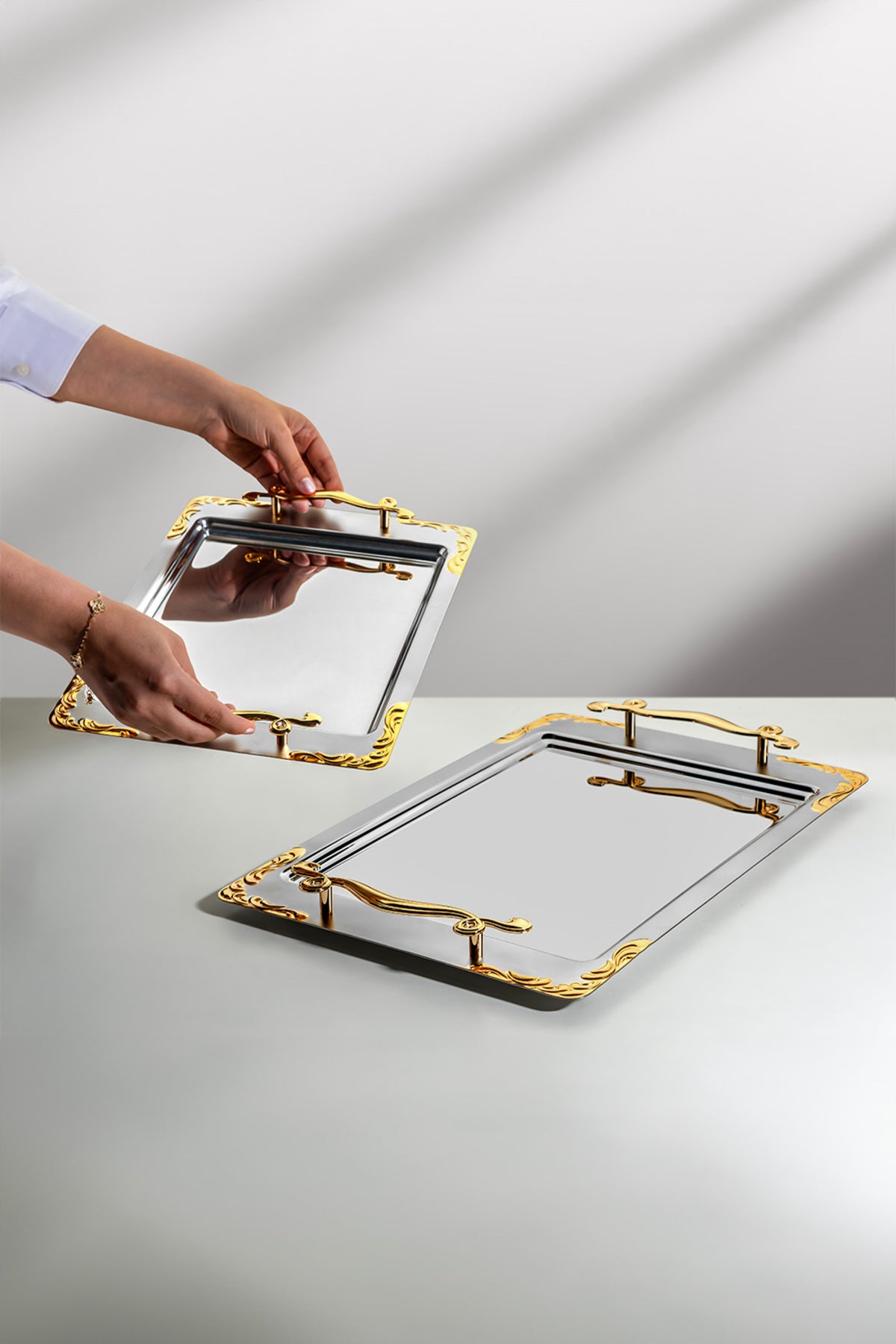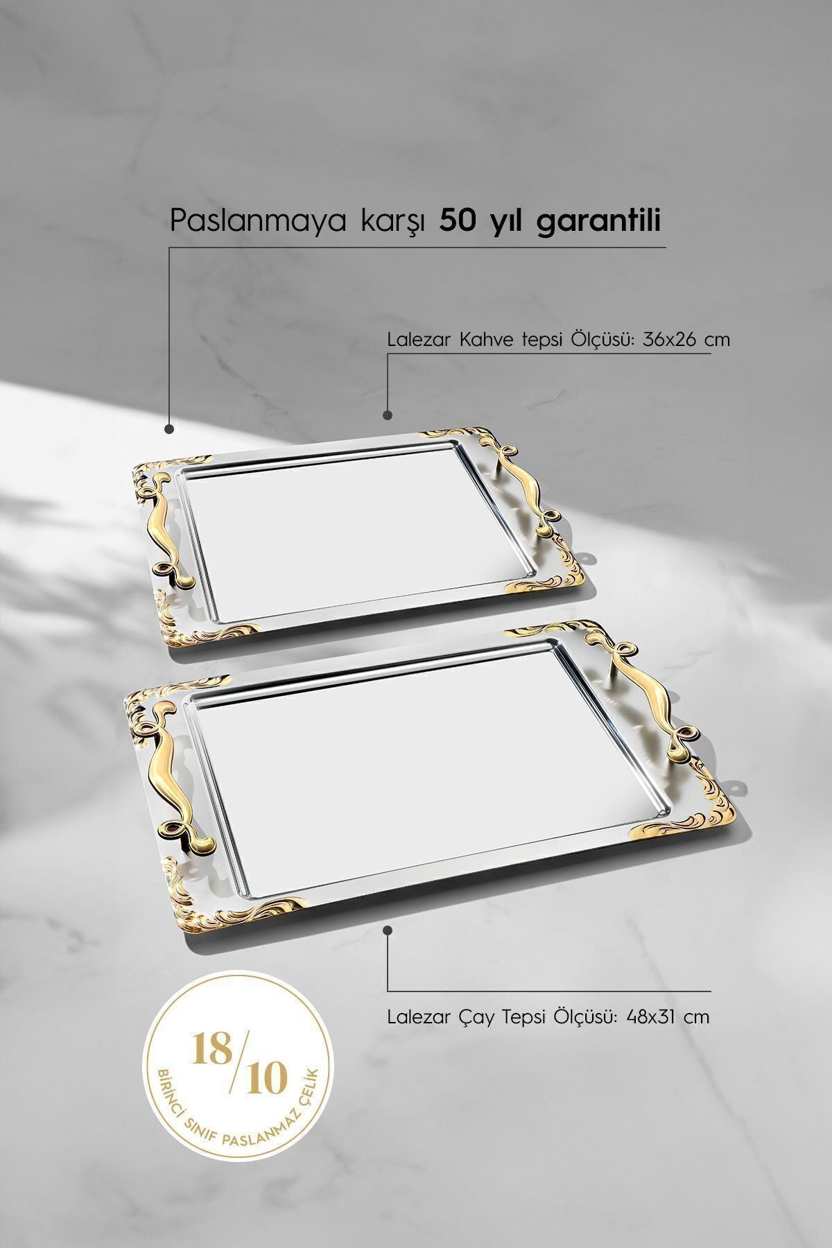 Lalezar 2'li Altın Saten Çelik Tepsi Seti