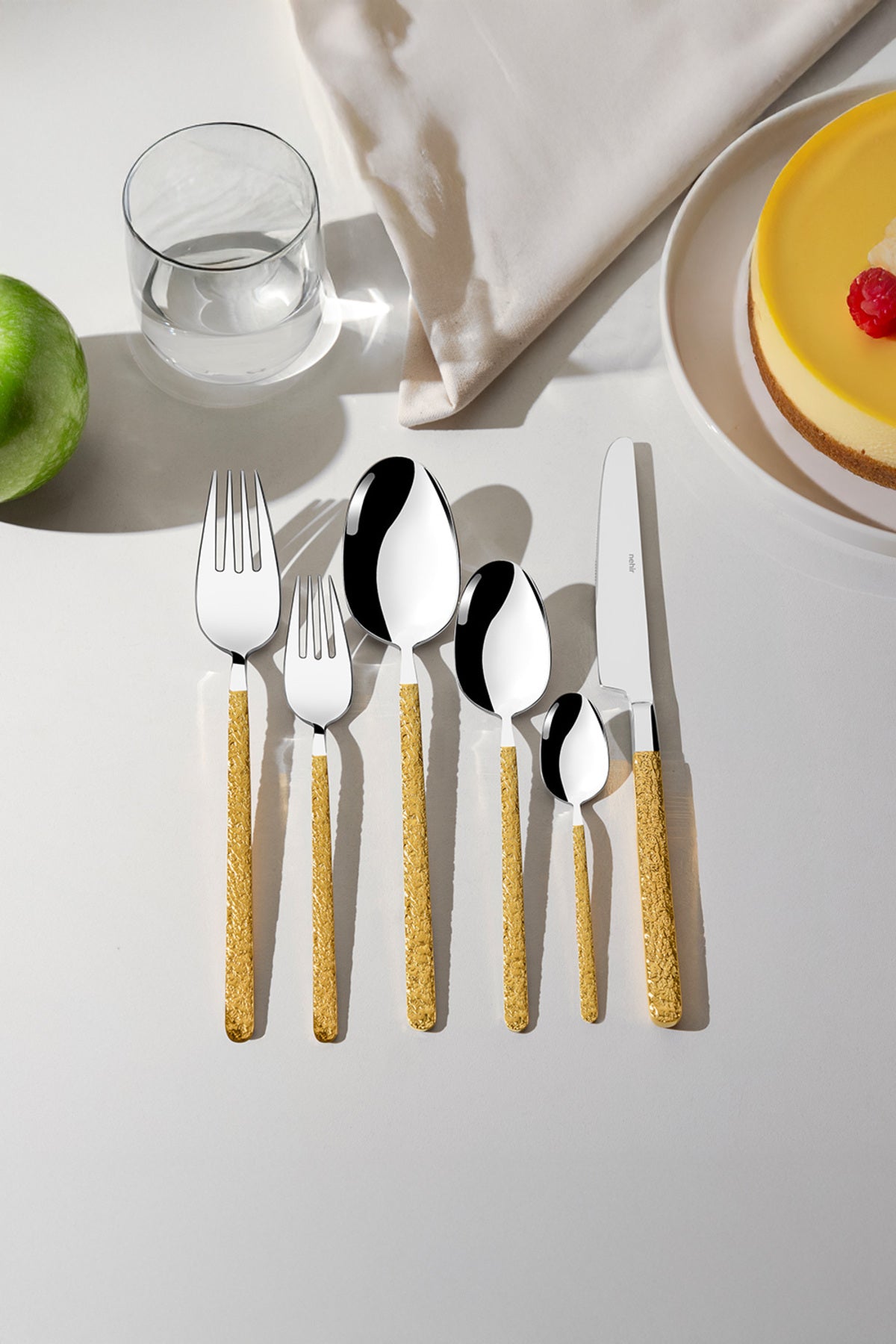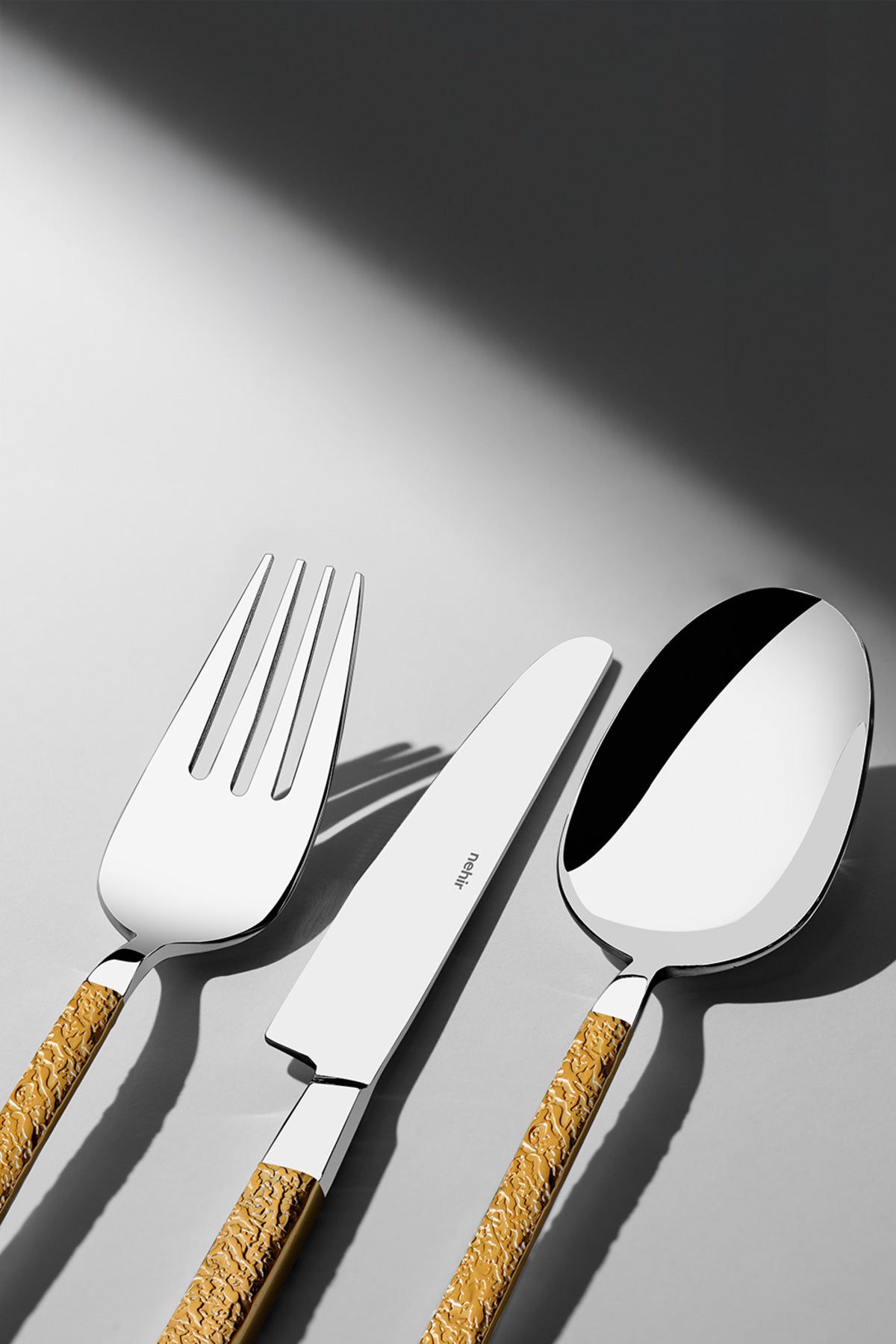 Lyon Altın Saten 12 Kişilik 72 Parça Kutulu Çatal Kaşık Bıçak Takımı