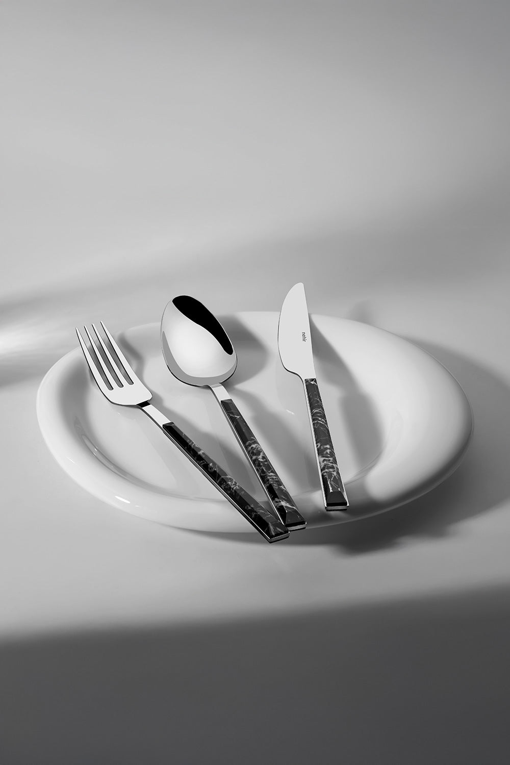Tulip Siyah 6 Kişilik Mermer Desenli 18 Parça Kutulu Çatal Kaşık Bıçak Takımı